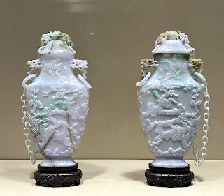 | Pair of Vases with Lids and Chains White Jadeite 19th. Cent. Qing Dynasty |